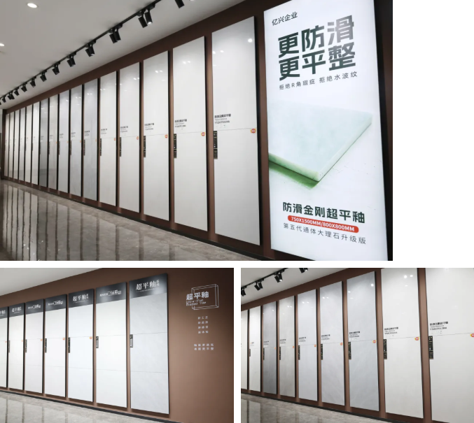“防滑金刚超平釉”系列,采用行业先进的工艺技术,采取更大吨位压机进行压制,真正做到避免R角、水波纹、辊棒印等问题,而且
