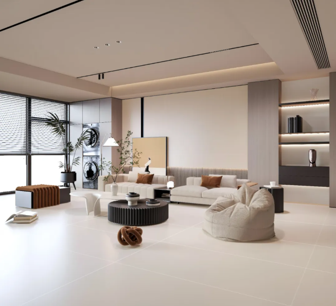 如月华流淌过静谧湖面,漾开圈圈温柔的涟漪。淡雅的米黄底色,为空间披上一层永不落幕的宁静光晕。